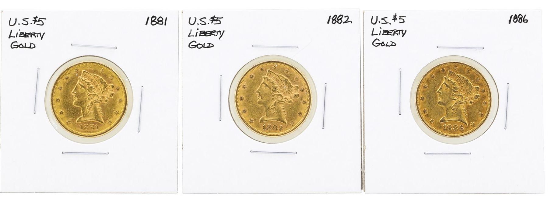 One Lot of (3) $5 Liberty Head Half Eagle Gold Coins.