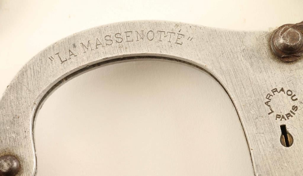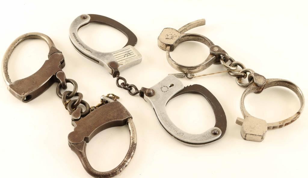 (1) La Massenotte Laraou Paris handcuffs (1) Mattatuck Mfg Co Waterbury marked cuffs (1) Antique Nickel Plated cuffs From Arizona collector Don Fortney Sr.