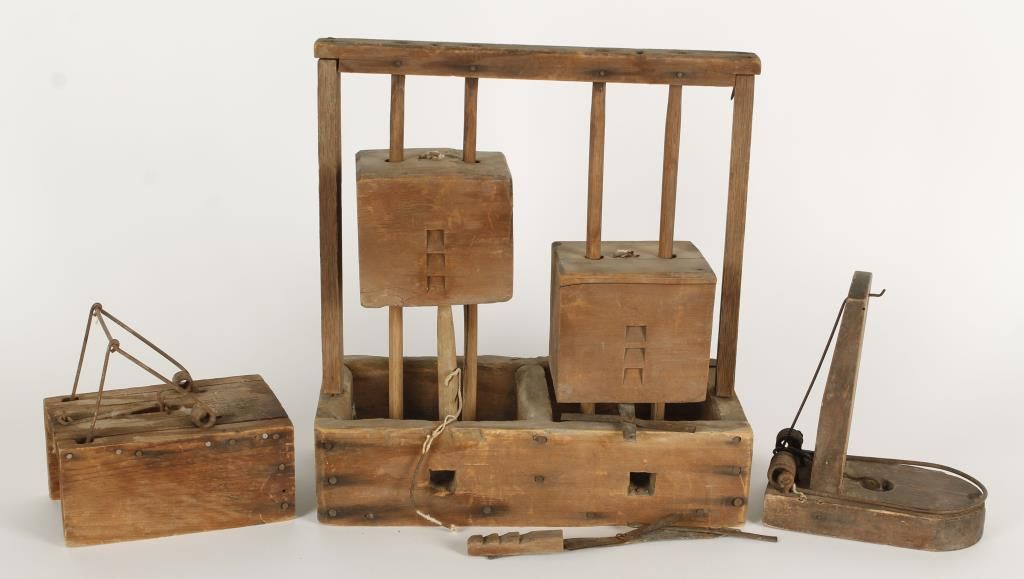(1) California Pocket Gopher Trap, (1) mousetrap, and (1) trap that kills the mouse the mouse by dropping a block on it.