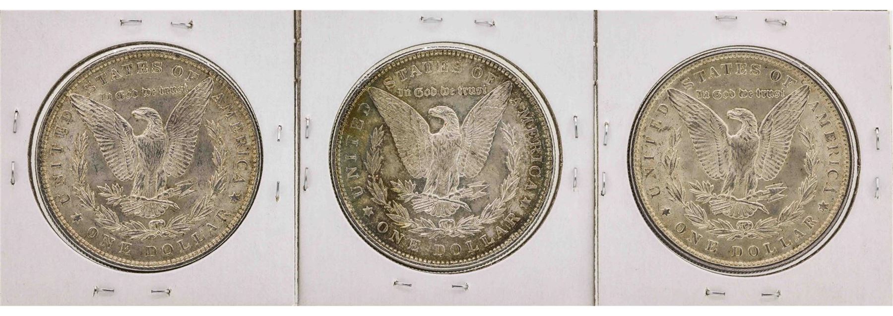 One Lot of (3) Assorted Date $1 Morgan Silver Dollar Coins.
