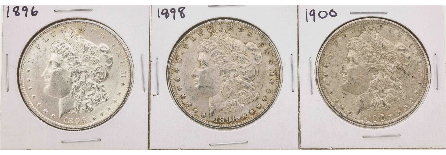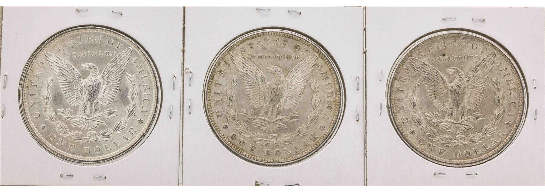 One Lot of (3) Assorted Date $1 Morgan Silver Dollar Coins.