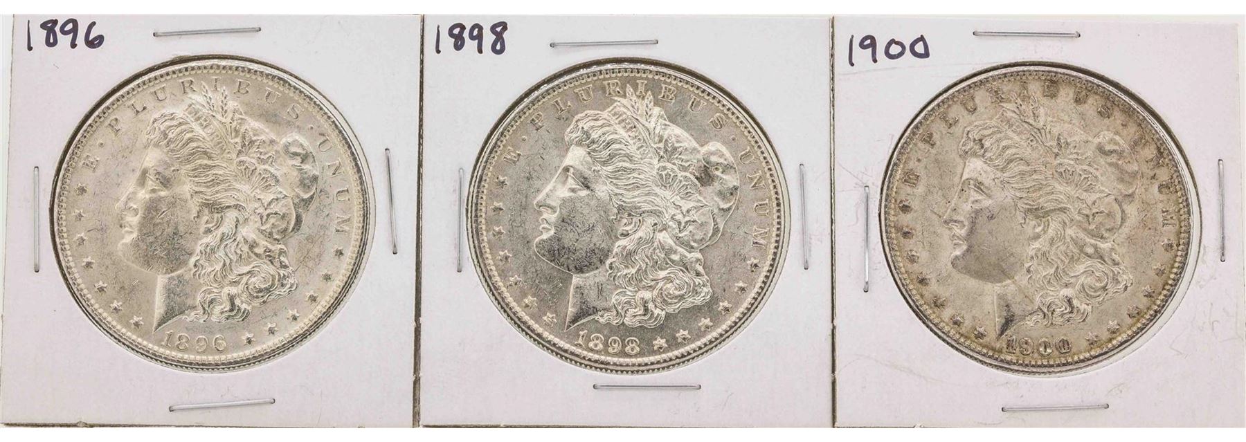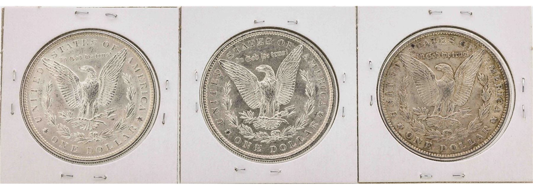 One Lot of (3) Assorted Date $1 Morgan Silver Dollar Coins.