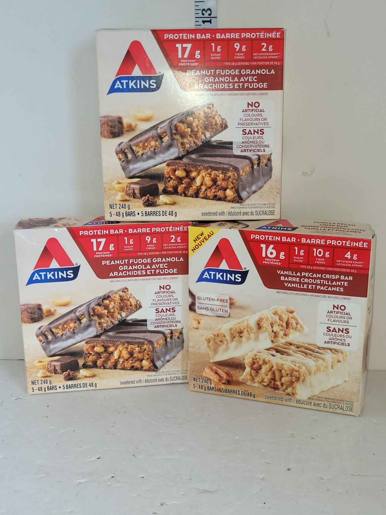 Lot of 3 Atkins Protein Bars - Peanut Fudge/Vanilla Pecan - BB May June 2024