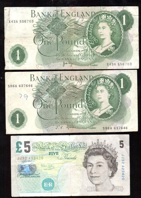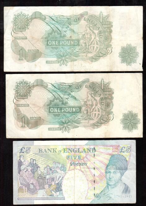 Lot 362; Lot of 3 - Bank of England One Pound, Five Pound Notes