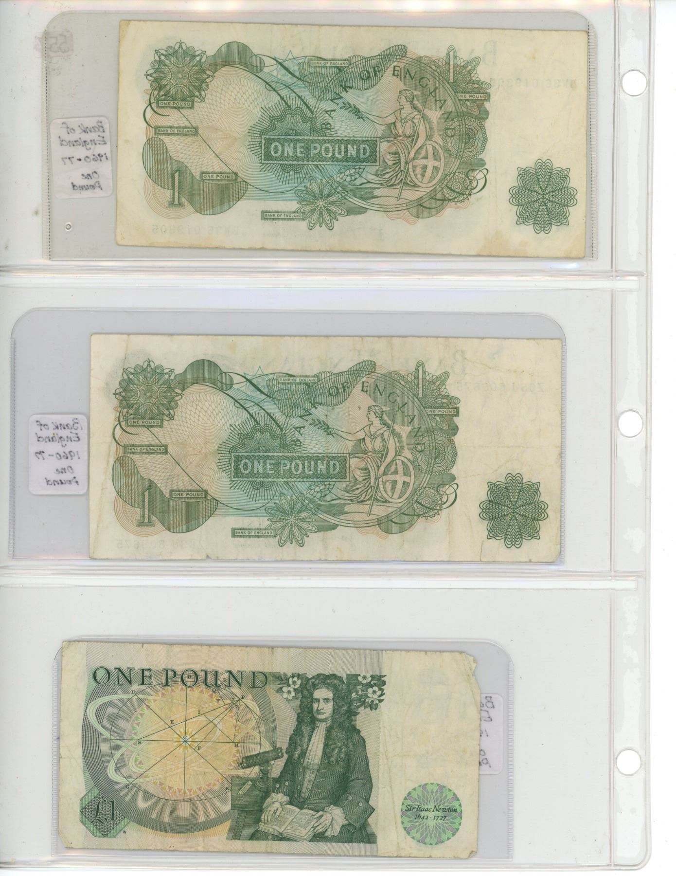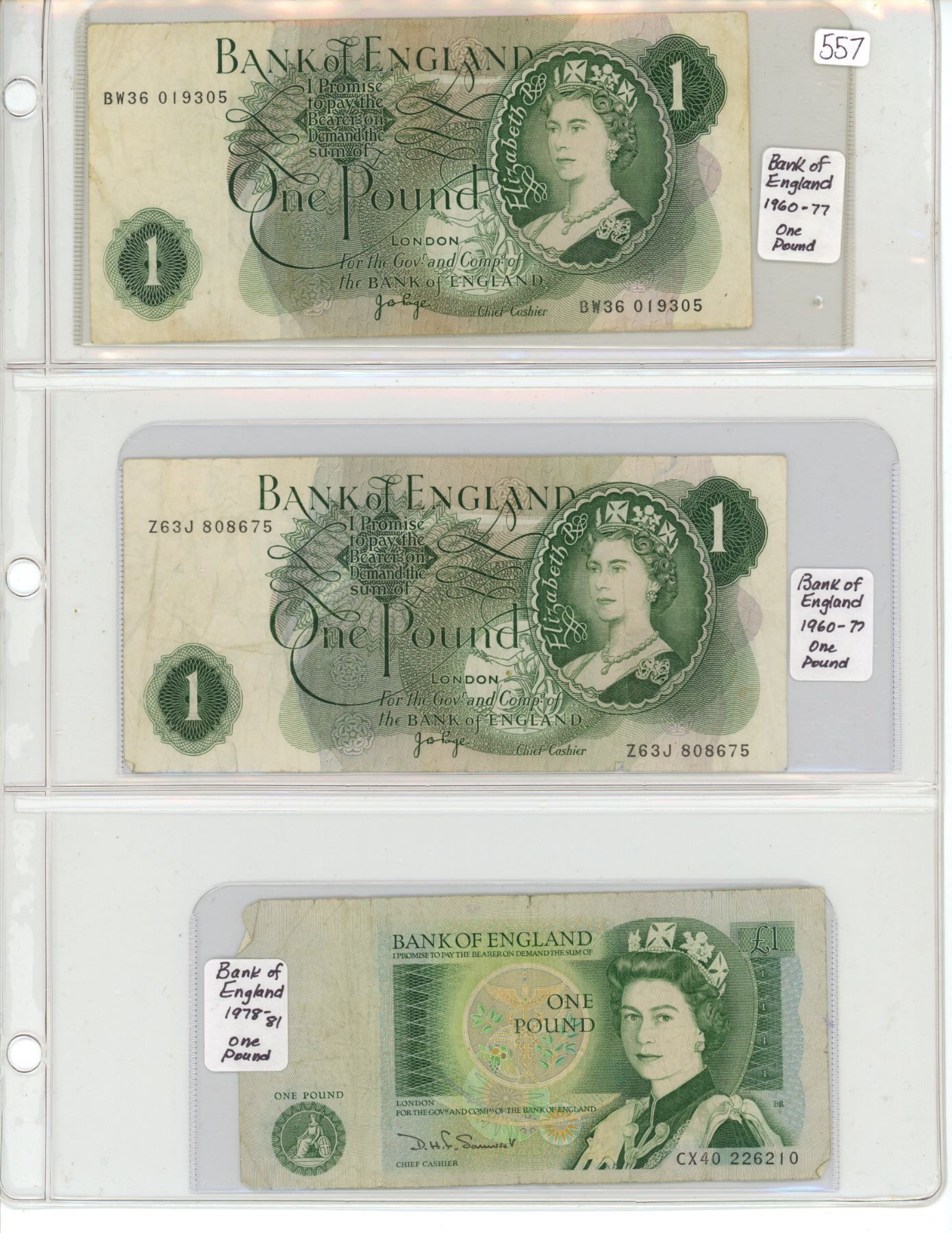 Lot of 3 Bank of England notes: 1960-77 One Pound (x2), 1978-81 One Pound