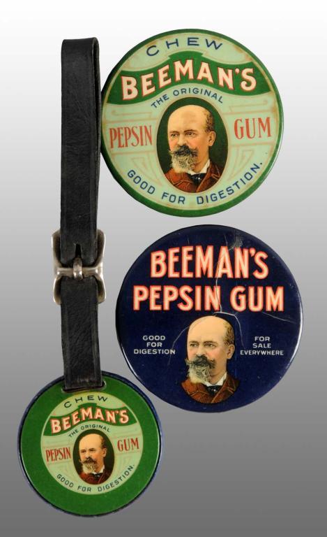 Description Includes one blue pocket mirror with cracking and silvering, one green pocket mirror with some foxing around edges, and one watch fob. Condition (Good - Excellent). Size Largest: 2 - 1/16" Dia.