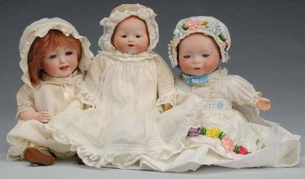 Description Germany, Ca. 1910. Hertel, Schwab & Co. 150 baby with sleeping eyes, jointed composition body; Amberg Baby with cloth body and refinished composition hands; A.M. 351 baby on cloth body with compo hands. All well-dressed. Condition (Excellent). Size Largest: 11" T.
