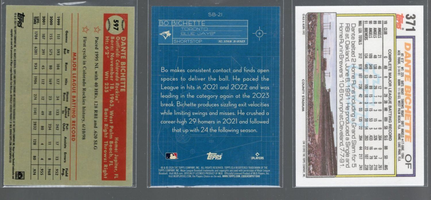Lot of 3 Bo and Dante Bichette Cards