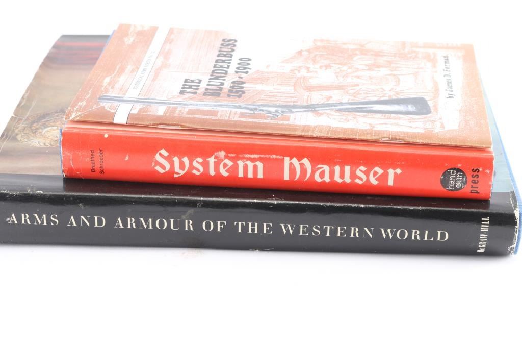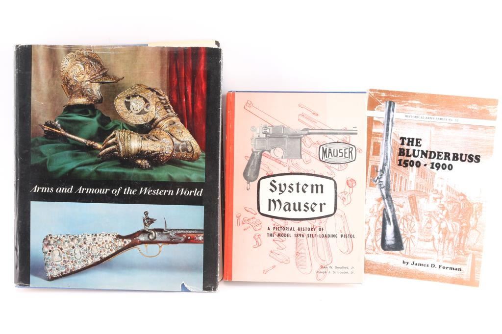 Includes: System Mauser, A Pictorial History of the Model 1896 Self-Loading Pistol (Copyright 1967) by John W. Breathed Jr. and Joseph J. Schroeder Jr., very good to excellent condition; Arms and Armour of the Western World (Copyright 1964) by Thomas, Gamber & Schedelmann, good condition; The Blunderbuss 1500-1900, Historical Arms Series No. 32 by James D. Forman.