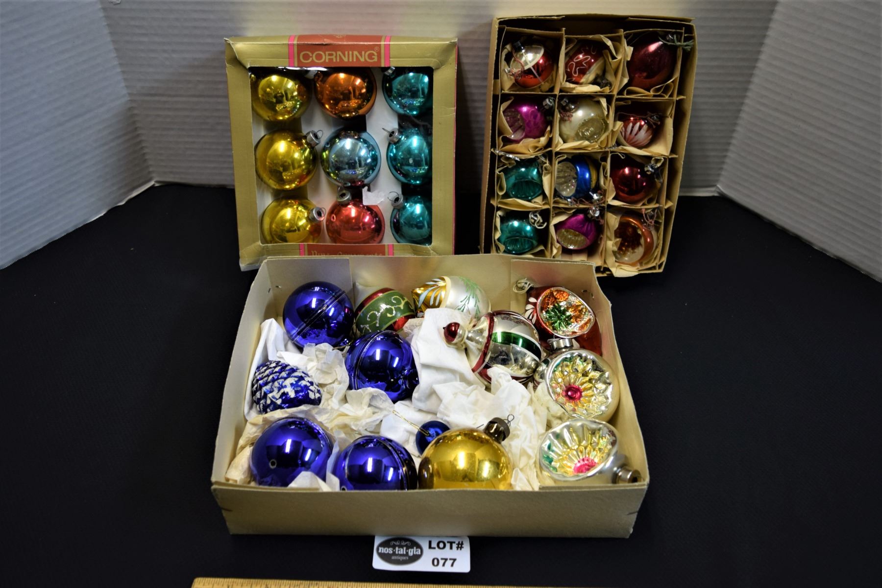 Lot of 3 Boxes of Assorted Vintage Glass Christmas Decorations