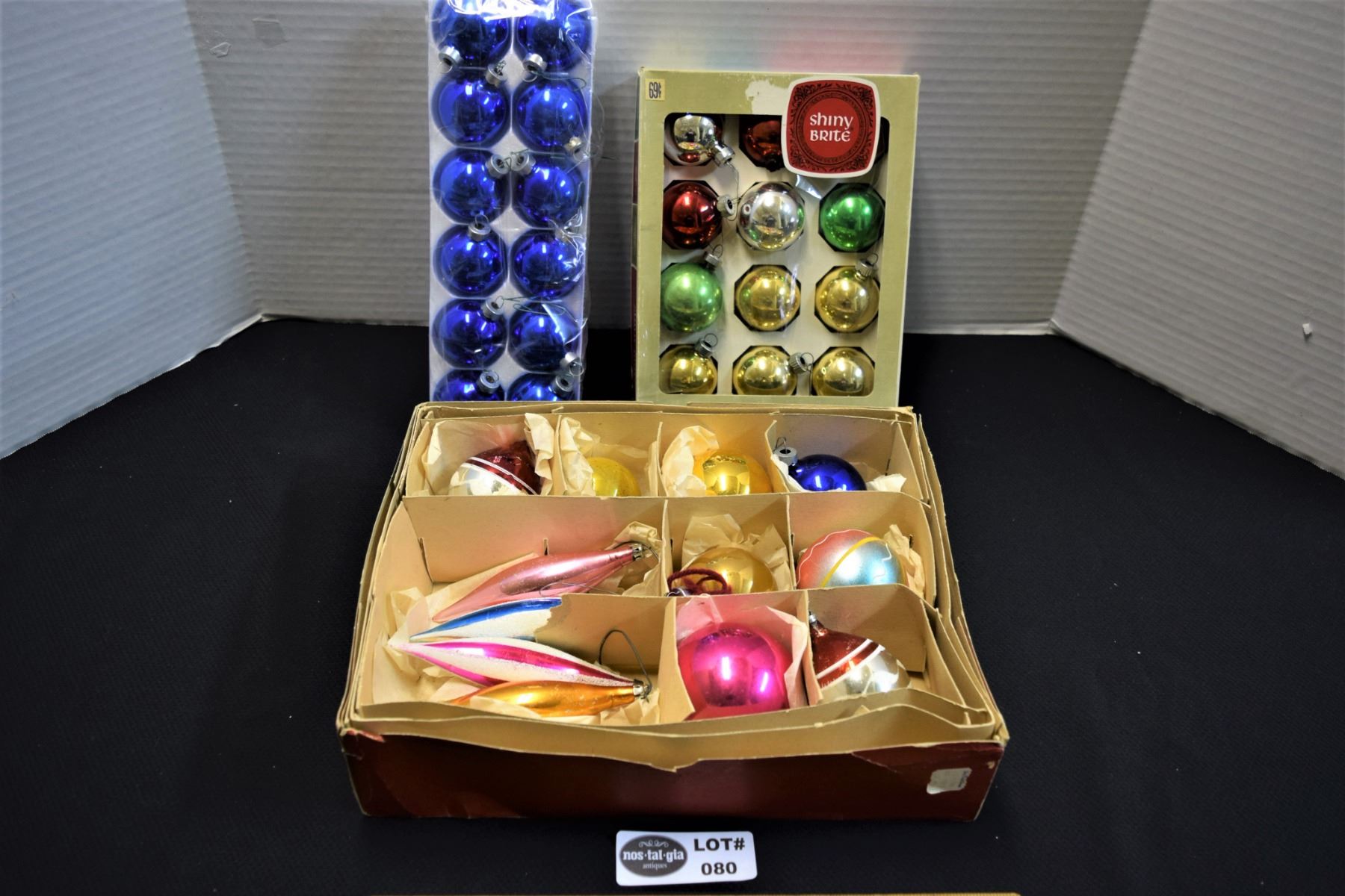Lot of 3 Boxes of Assorted Vintage Glass Christmas Decorations