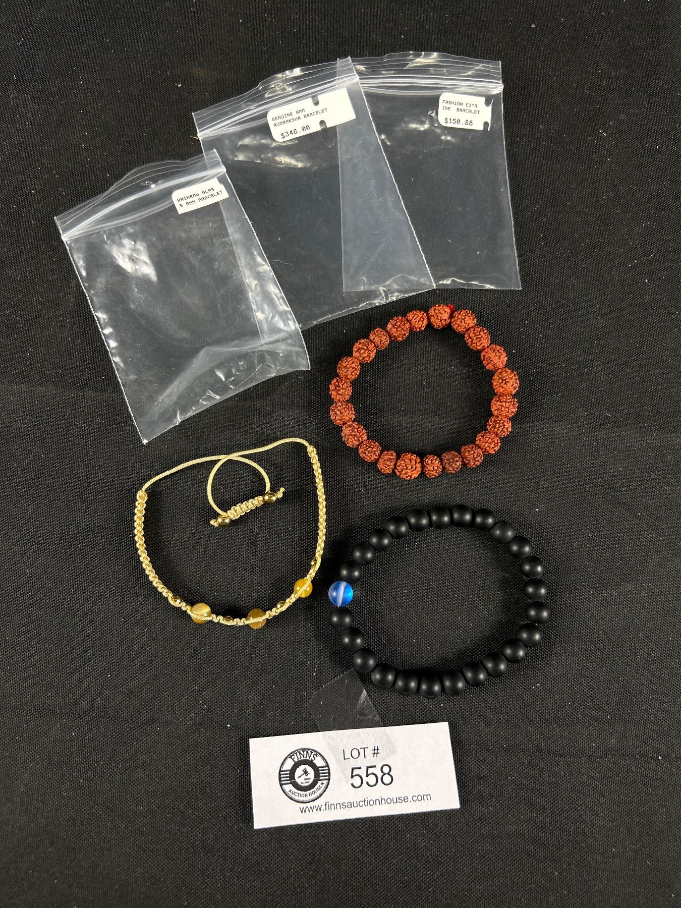 Lot of 3 Bracelets, Rainbow Glass, Fashion Cytrine and Genuine Rudrakshua