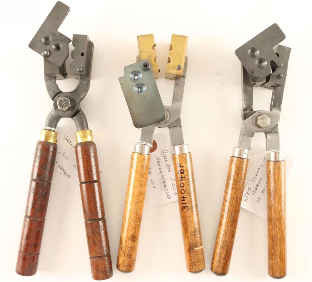 Includes a RCBS 2 cavity .35-200-FN mold, an Apple Gate 2 cavity .314-004 mold, and a Saeco 2 cavity .301-C-3H mold, all with wooden handles.