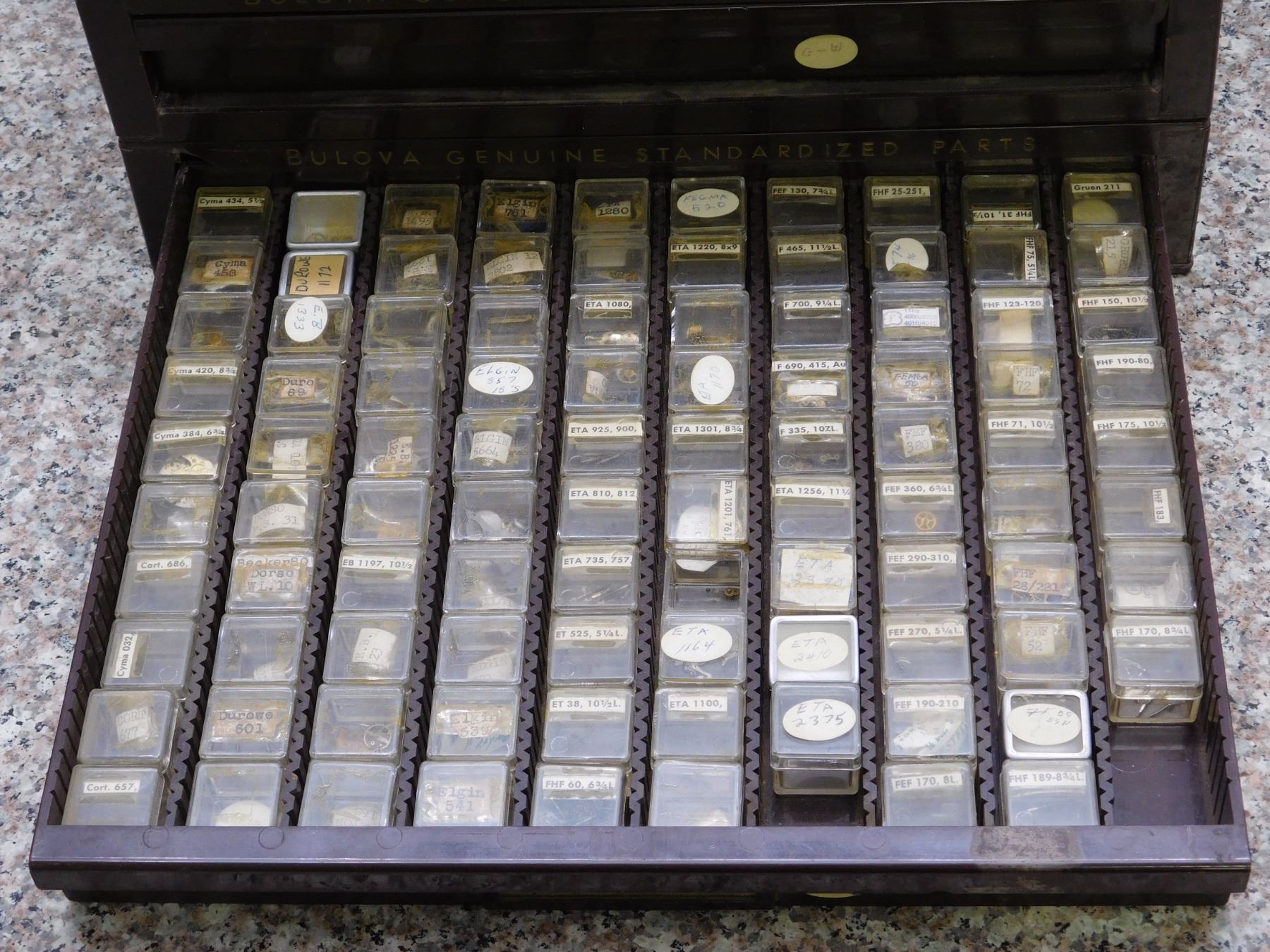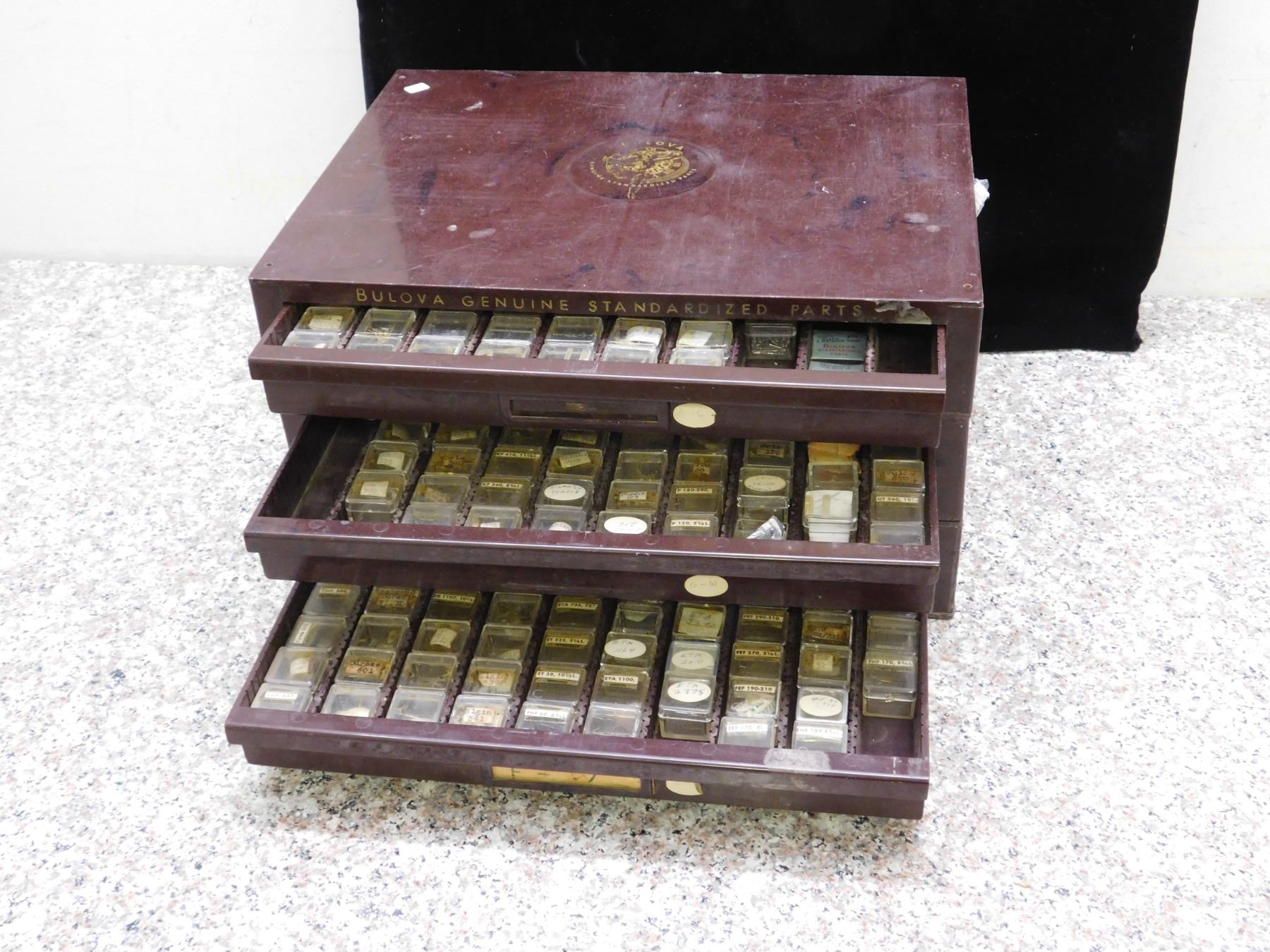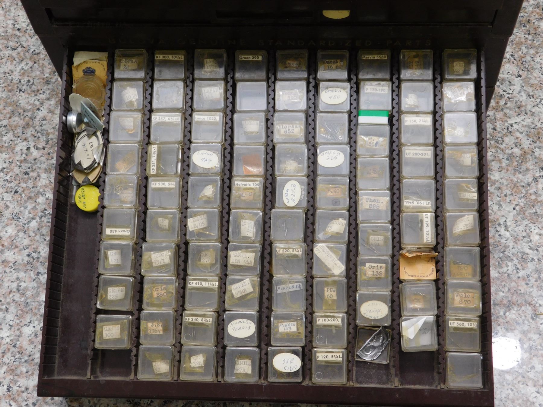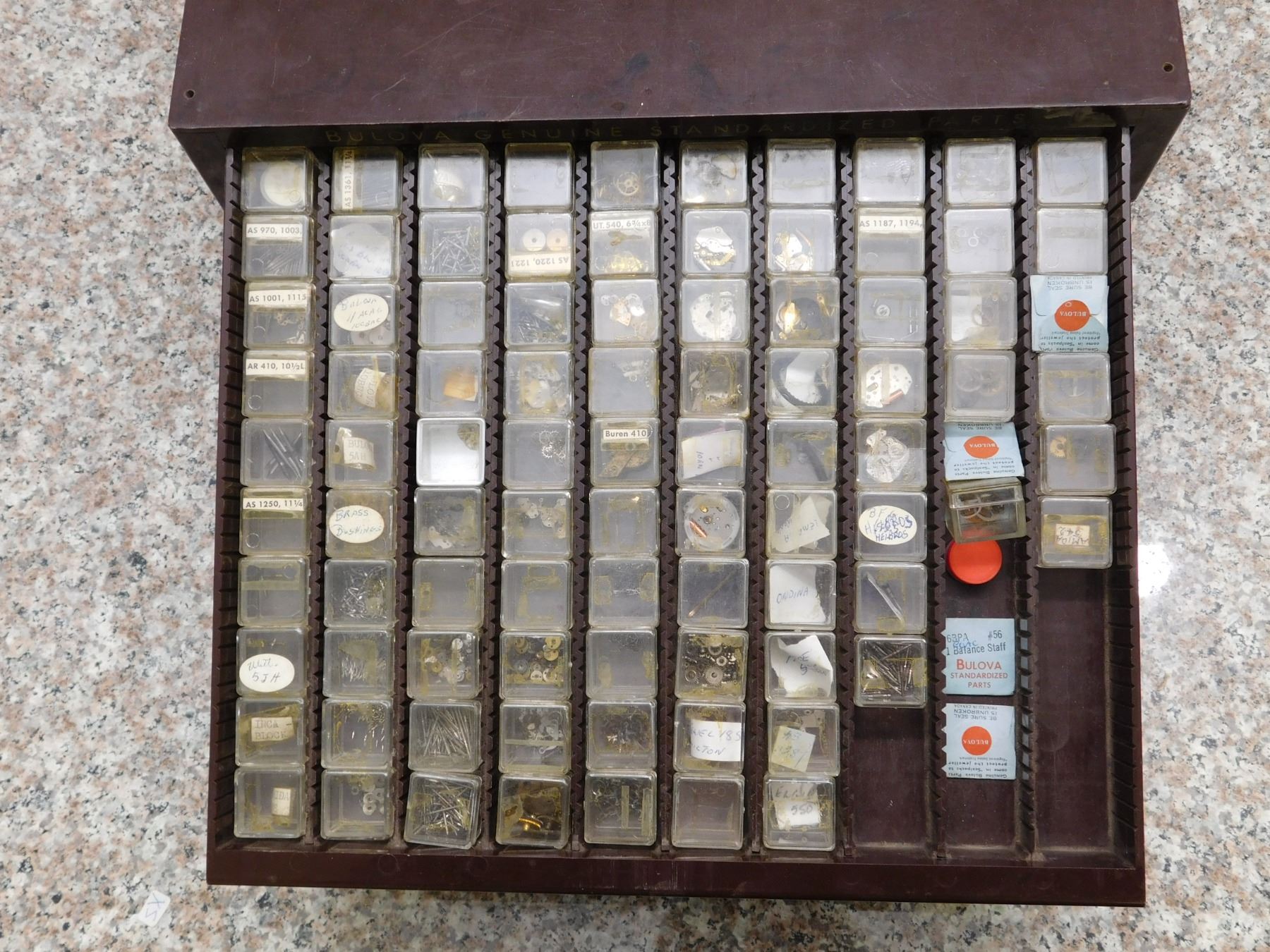 lots inside are marked Bulova. 100+ pieces.