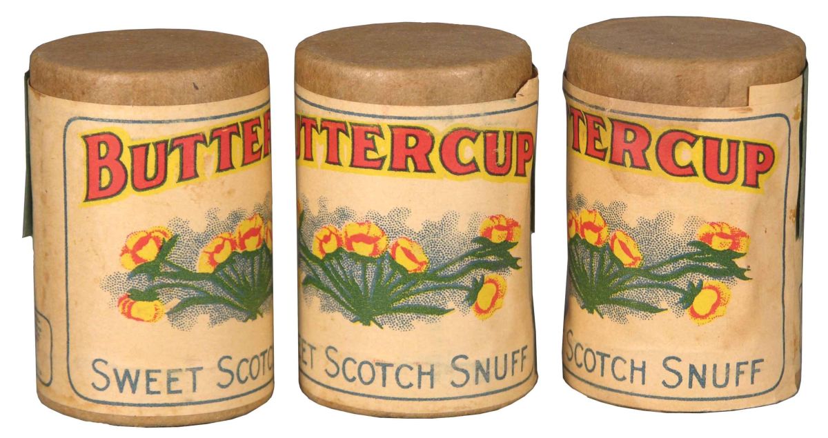 Lot of Three Unopened Buttercup Sweet Scotch Snuff Boxes. Excellent condition. 2 inches tall X 1 3/8 inch diameter. Start Price $20