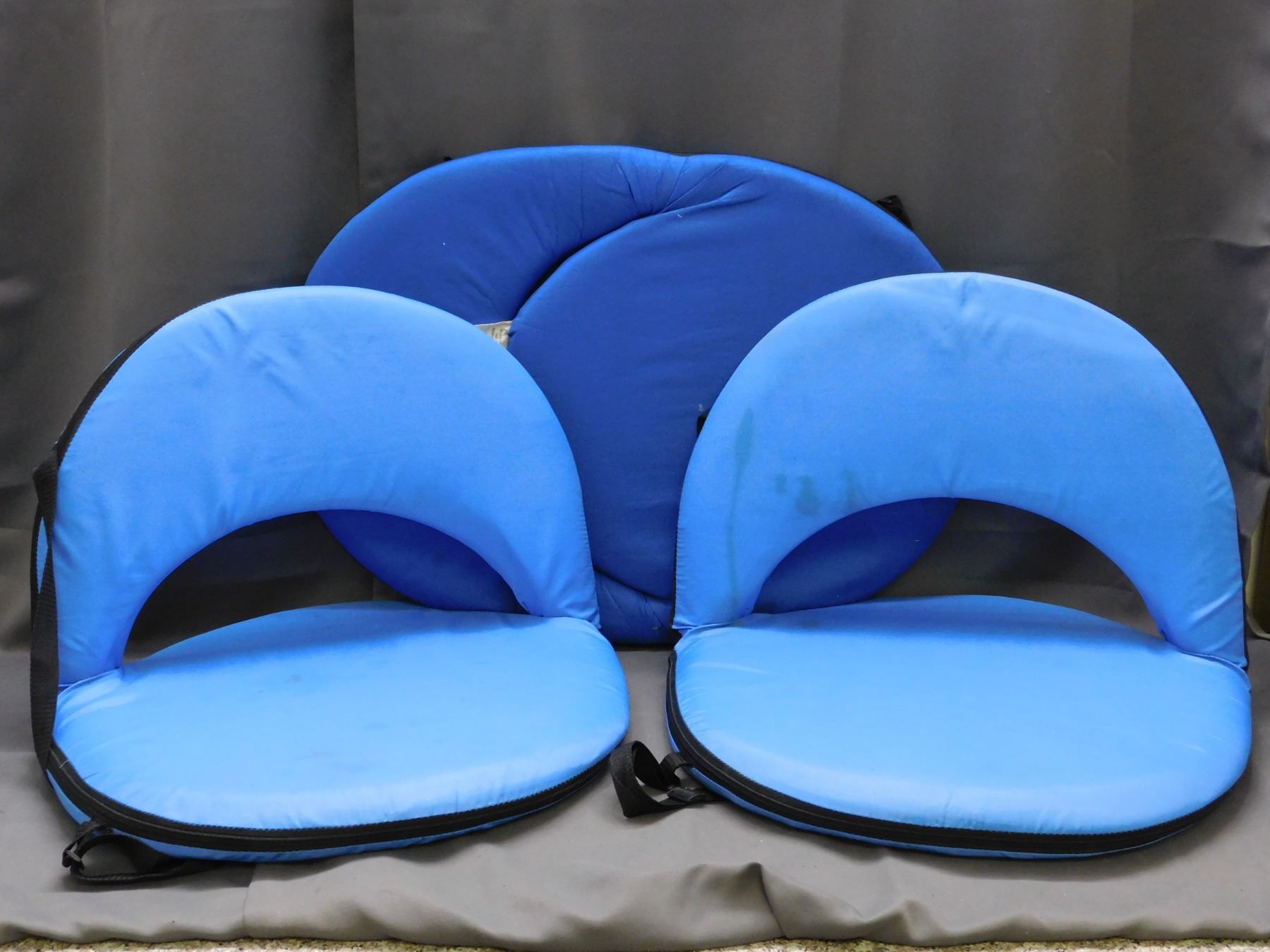 Lot of 3 Camping Outdoor Ground Level Round Fold-Out Chairs