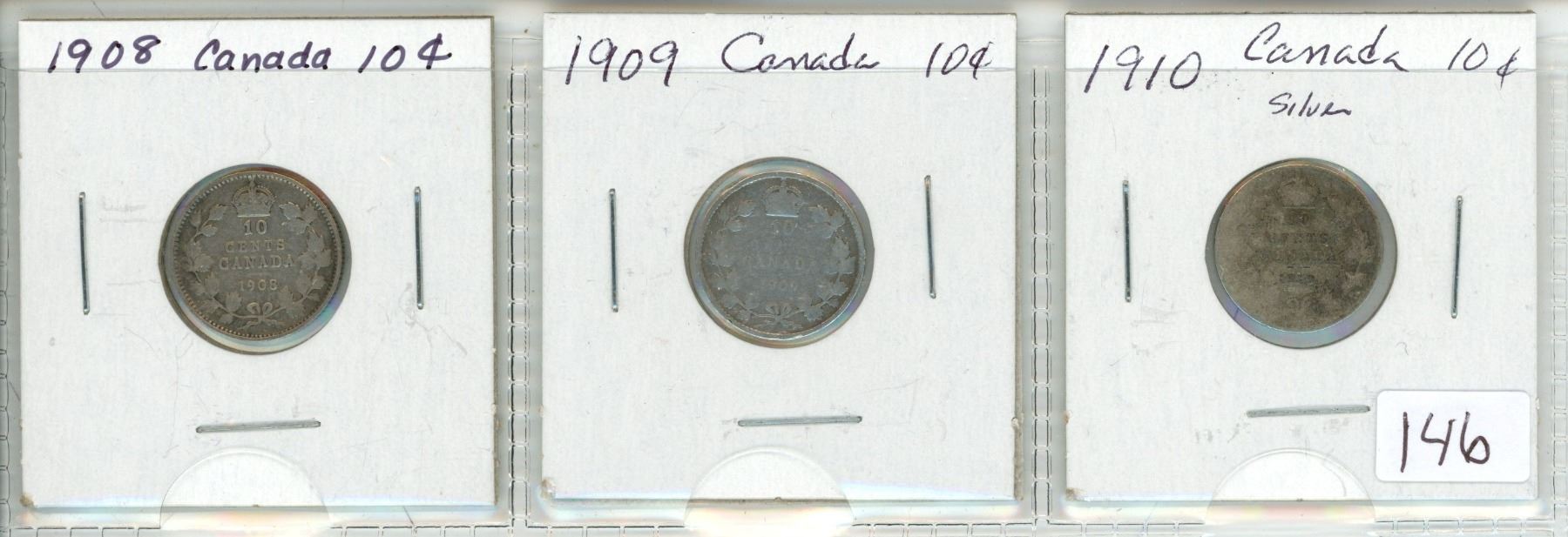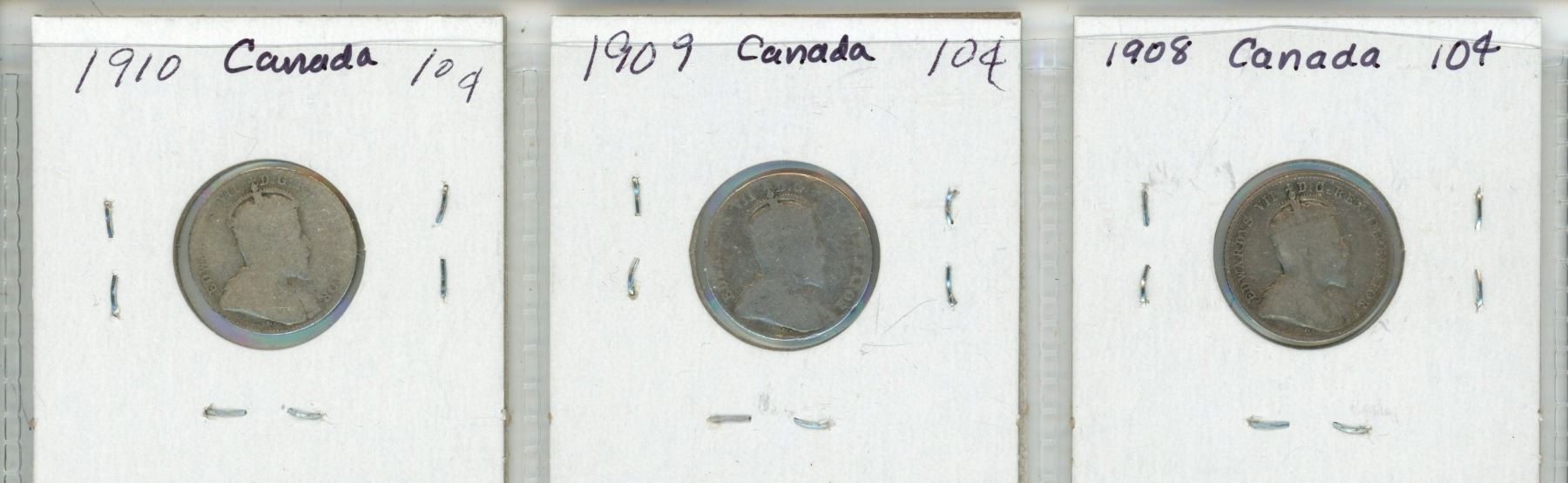 Lot of 3 Canada 10¢: 1908 - 1910