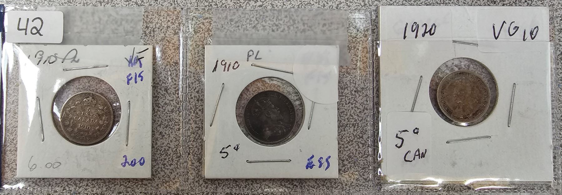 Lot of 3 Canada 5¢ - 1910 X 2(F-15), 1920 VG-10