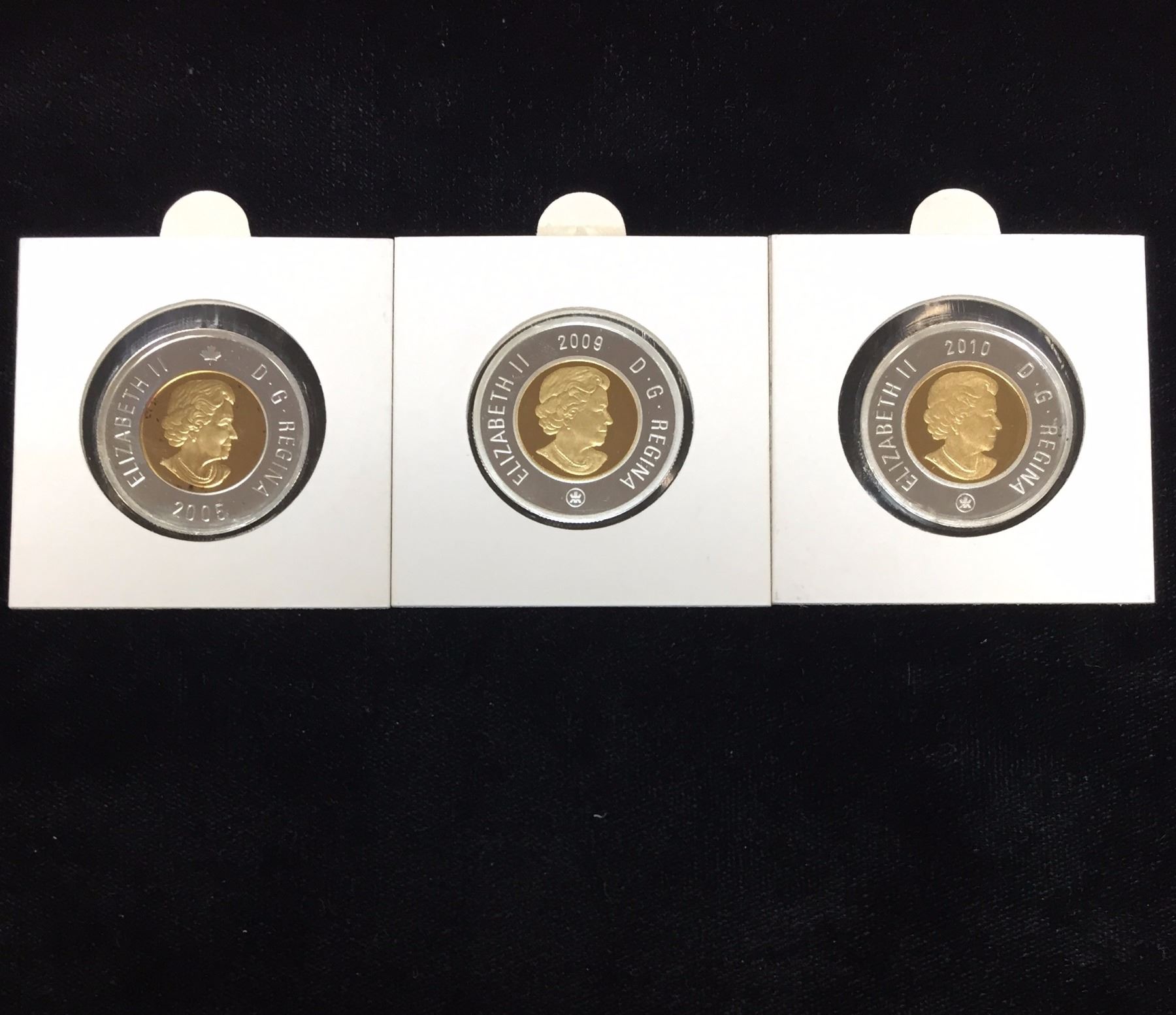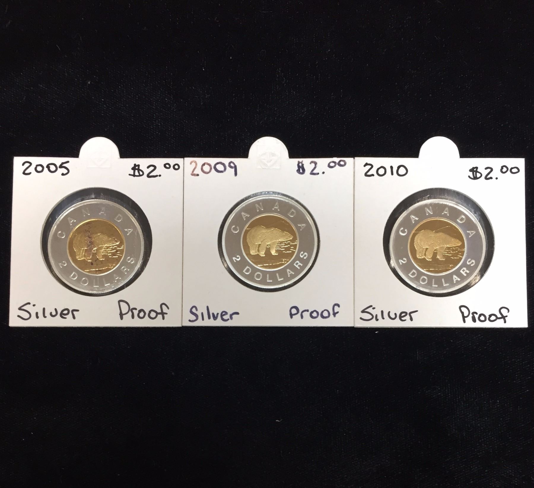 Lot 161 Lot of 3 - Proof Silver $2, 2005, 2009, 2010, UNC