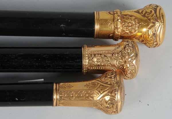 Description All with 14K yellow gold handles. Two are dated "1870s" and one has dents. Condition (Excellent). Size Largest: 36" L.