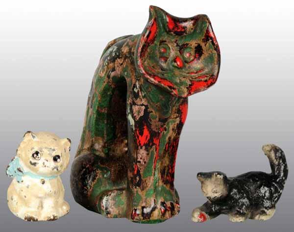 Description Includes one Kitty by Hubley, cat. #128, one later casting of Sitting Cat, and one Kitten with Ball by Wilton. Condition (Good). Size Largest: 4 - 3/4" T.