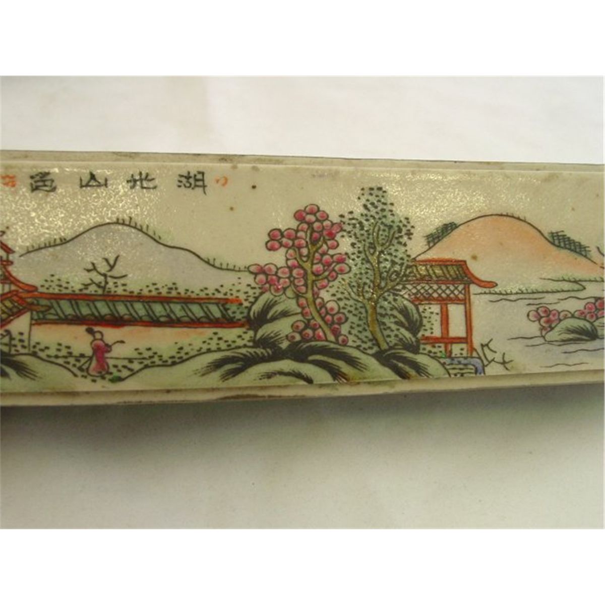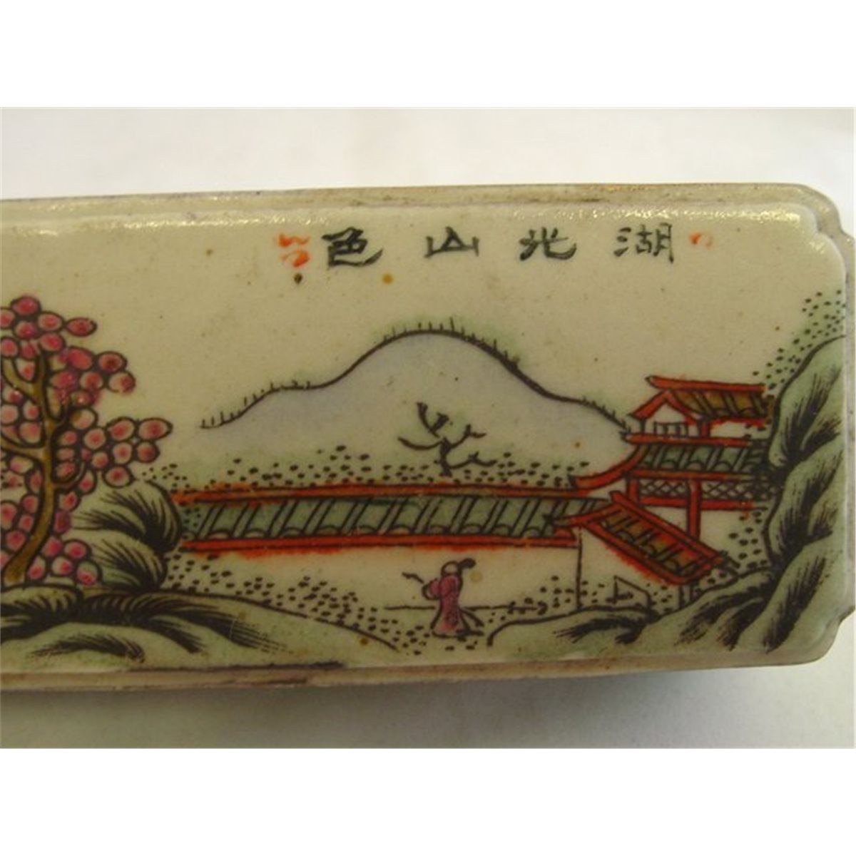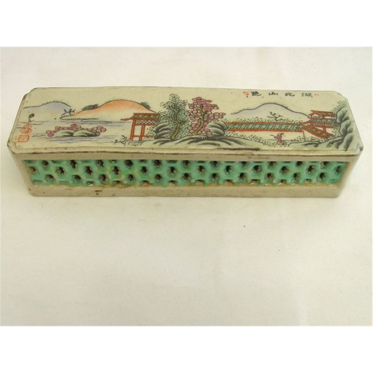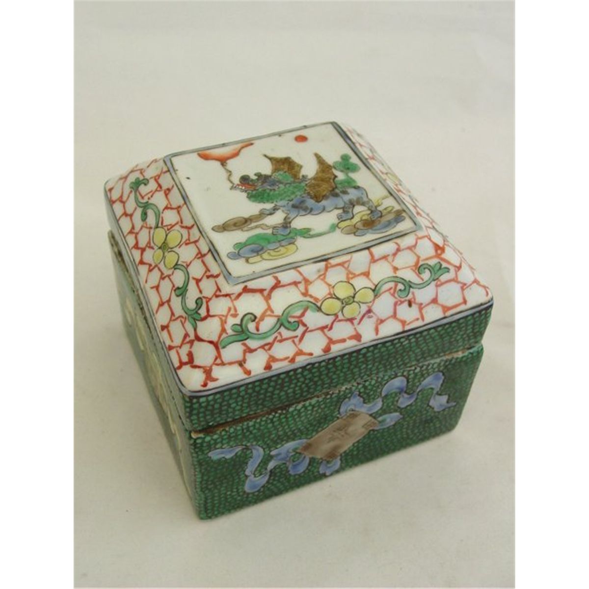 Pair porcelain painted weights, approx. 7" W x  1.25 H & a covered box, approx. 3.75" square. Please read our terms of sale.