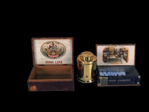 Lot of 3 Cigar Humidors 1 Brass & 2 Wooden