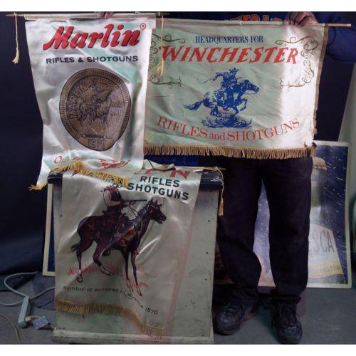 Lot of 3 Cloth Banners 2 Marlin & 1 Winchester - ea approx. 24"w
