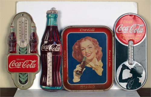 Lot of 3 Coca Cola Thermometers and 1943 Tray