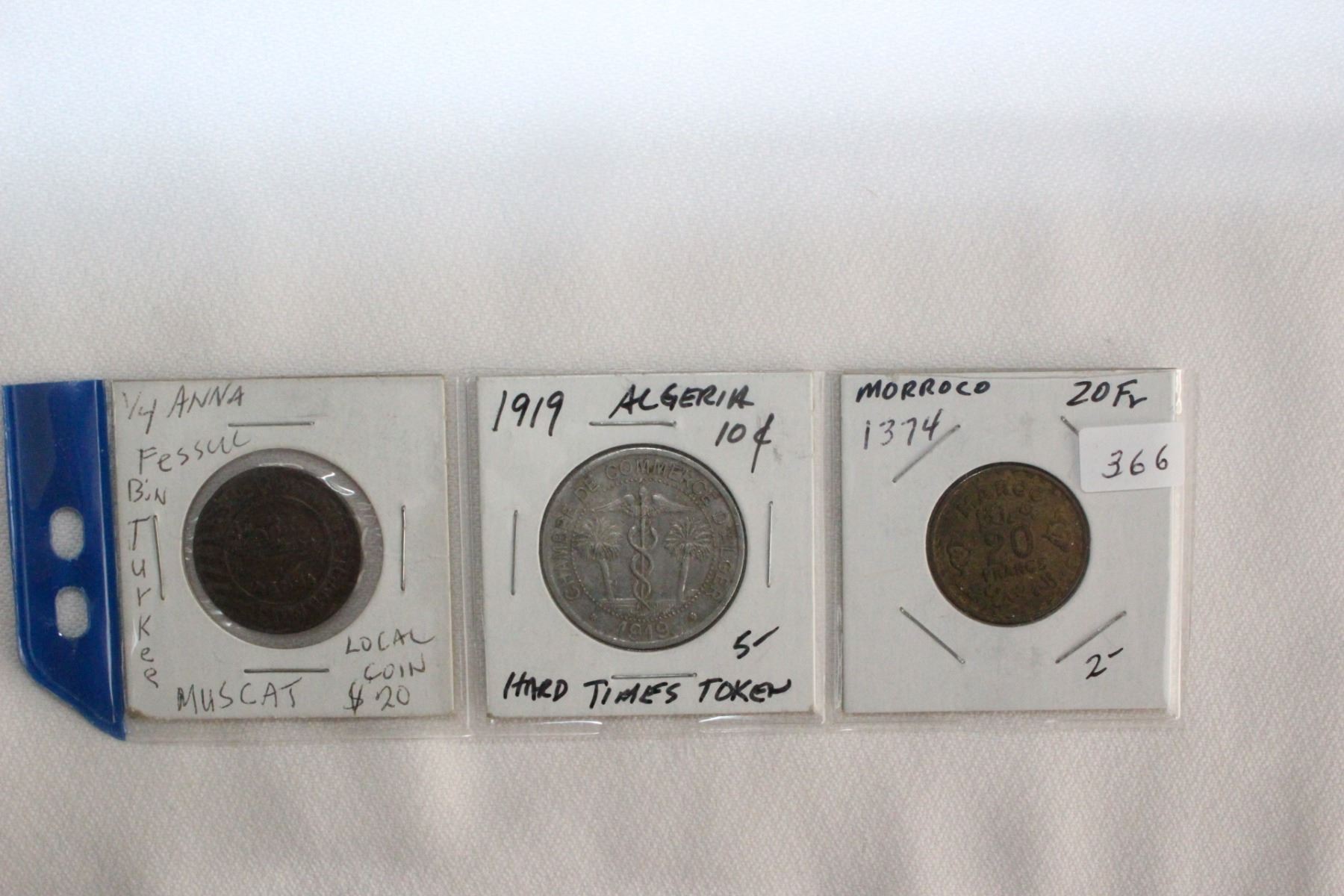 (1) Turkey; (1) 1919 Algeria Hard Time Token & (1) Morocco 20 Fr.