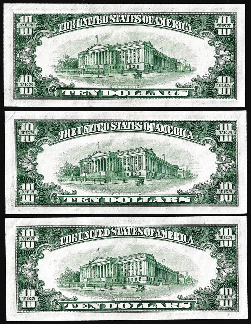 One Lot of (3) Consecutive 1950 $10 Federal Reserve Notes St. Louis.
