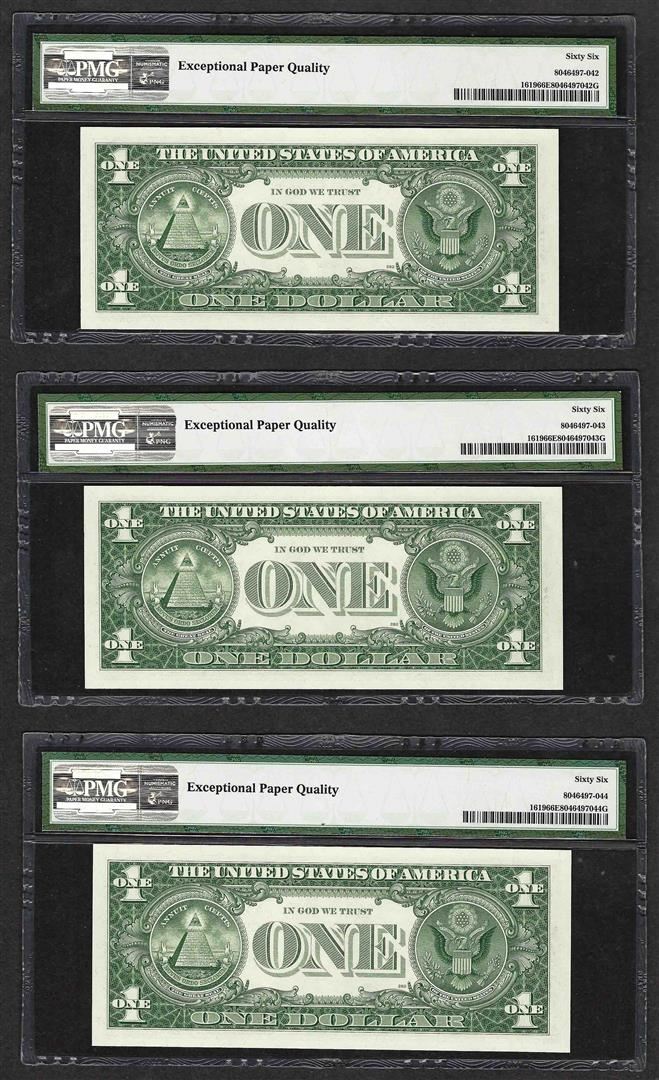 Lot of (3) Consecutive 1957 $1 Silver Certificate Notes PMG Gem Uncirculated 66E