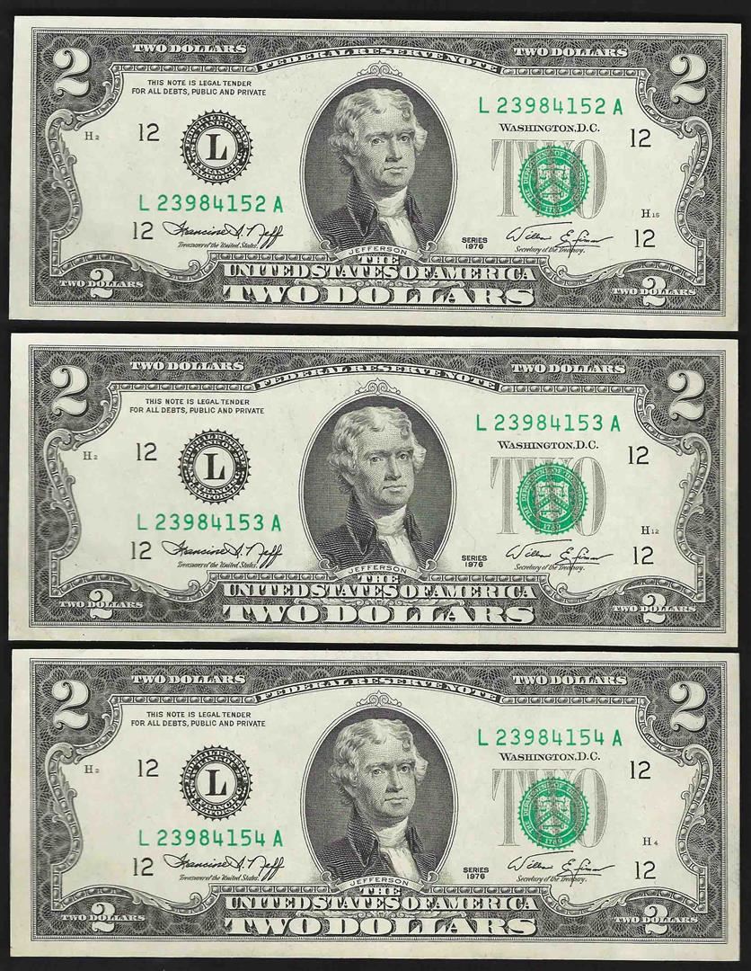 One Lot of (3) Consecutive 1976 $2 Federal Reserve Notes Uncirculated.
