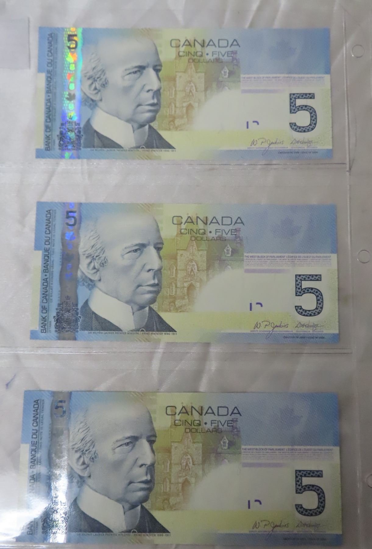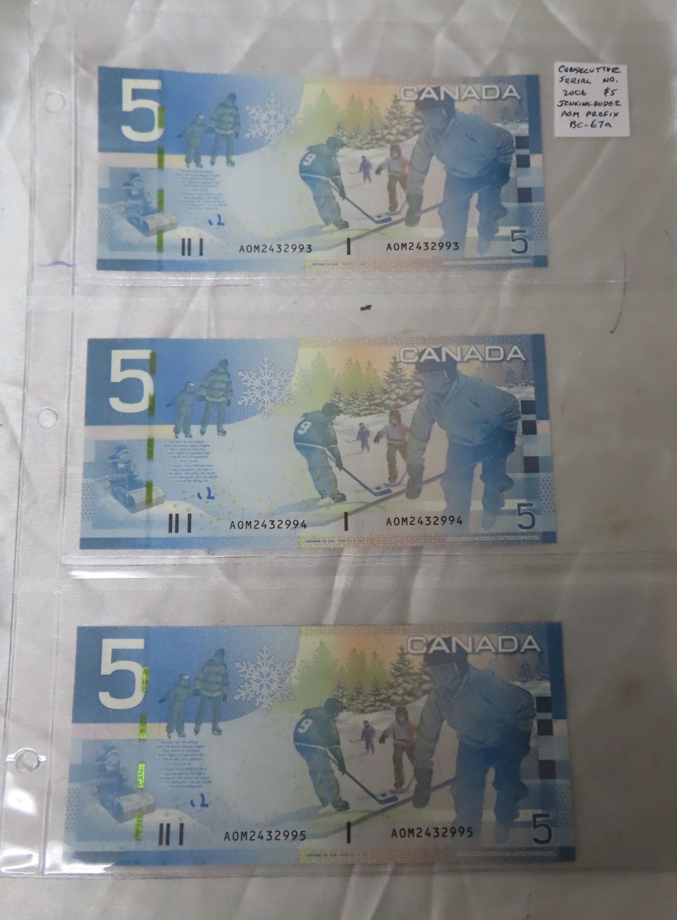 Lot of 3 Consecutive Serial Number 2006 $5 notes. Jenkins-Dodge signatures. AOM Prefix. BC-67a. Hockey. Serial Numbers 2432993, 2432994 & 2432995.