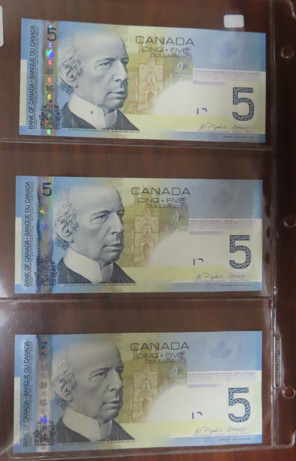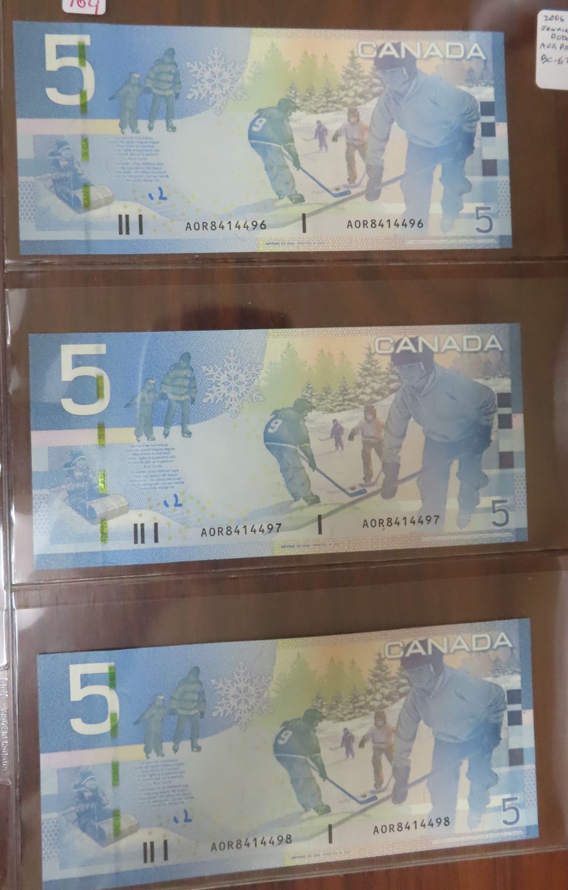 Lot of 3 Consecutive Serial Number 2006 $5 notes. Jenkins-Dodge signatures. AOR Prefix. BC-67a. Hockey. Serial Numbers 8414496, 8414497 & 8414498.