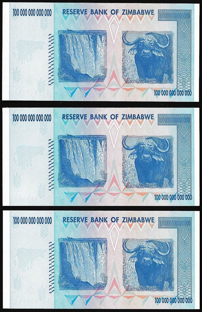 Lot of (3) Consecutive Zimbabwe One Hundred Trillion Dollar Notes