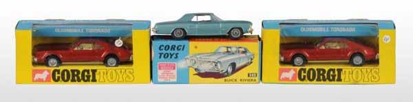Description Circa 1964 to 1972. Includes two number 276 Oldsmobile Toronados and one number 245 Buick Riviera. All include their original boxes. Condition (Excellent). Size Both: 6" L.