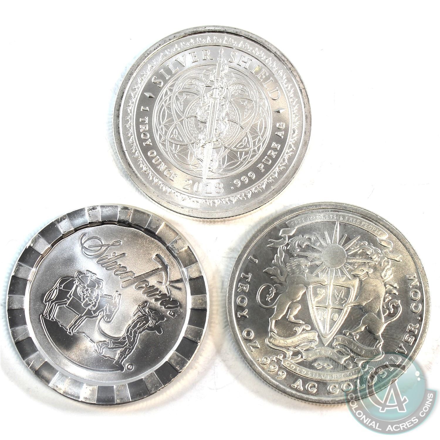 Lot of 3 Different 1oz Fine Silver Rounds (Tax Exempt) 3pcs.