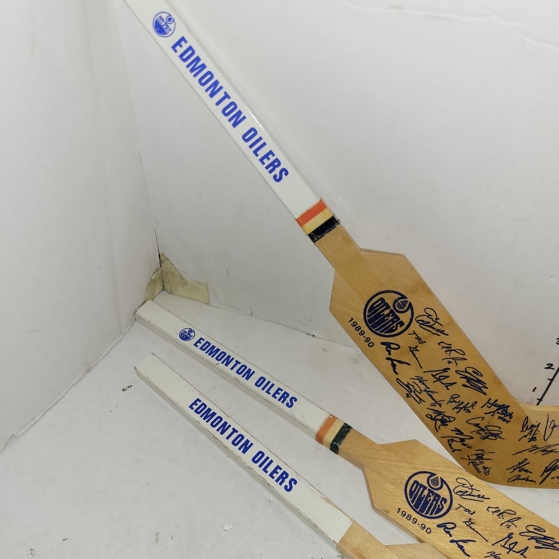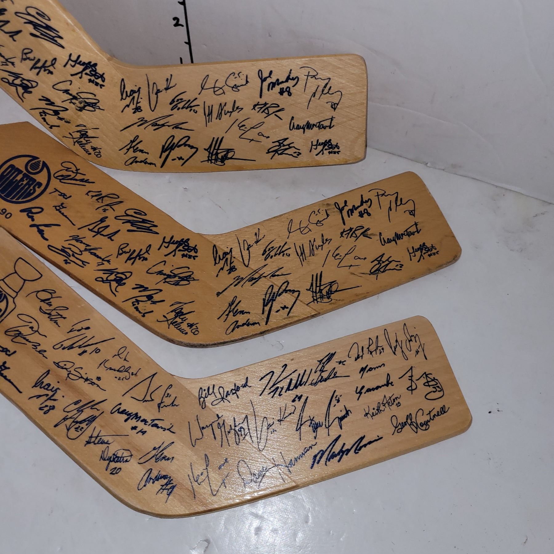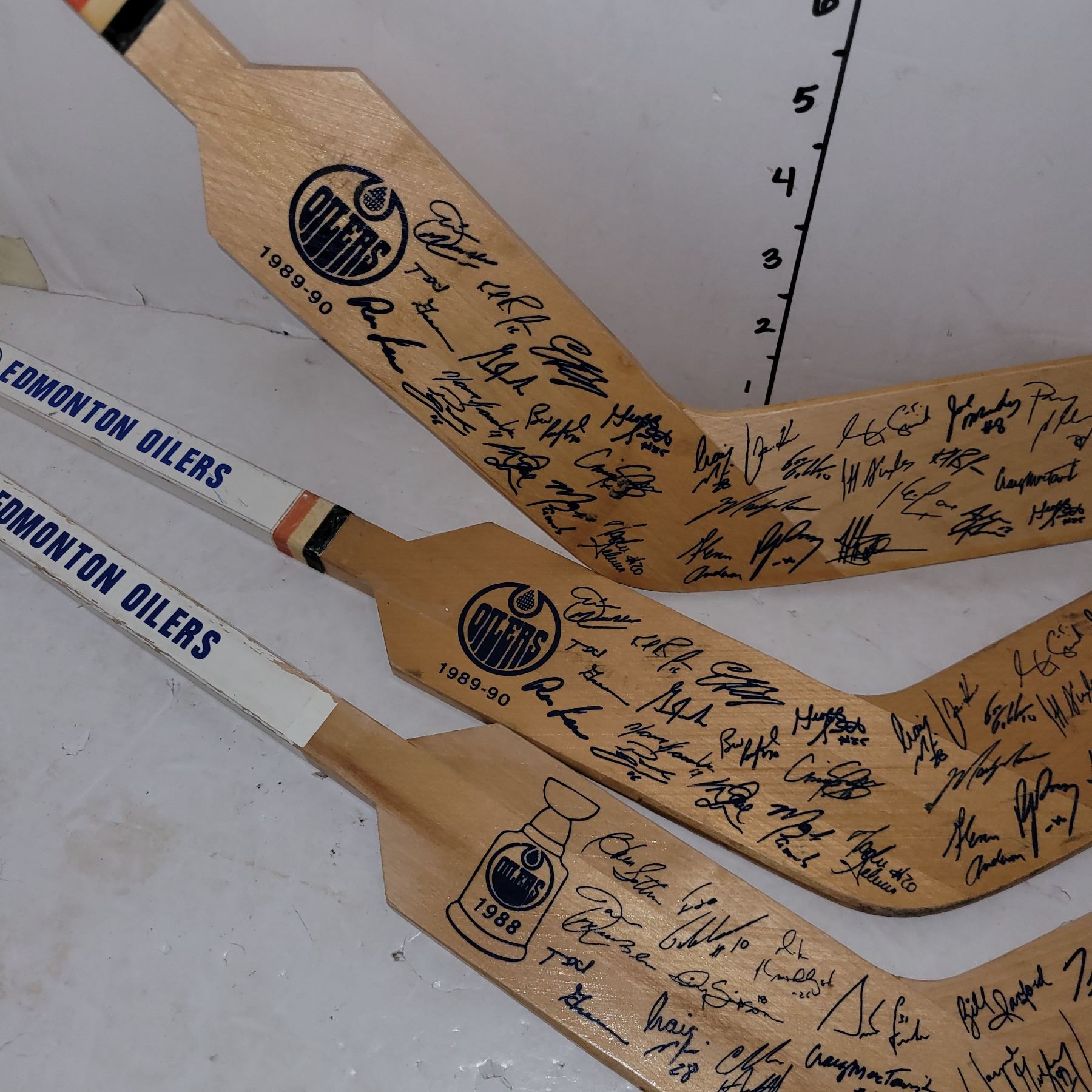 Lot of 3 Edmonton Oilers Auto Signed Memorbilia Wooden Mini Sticks