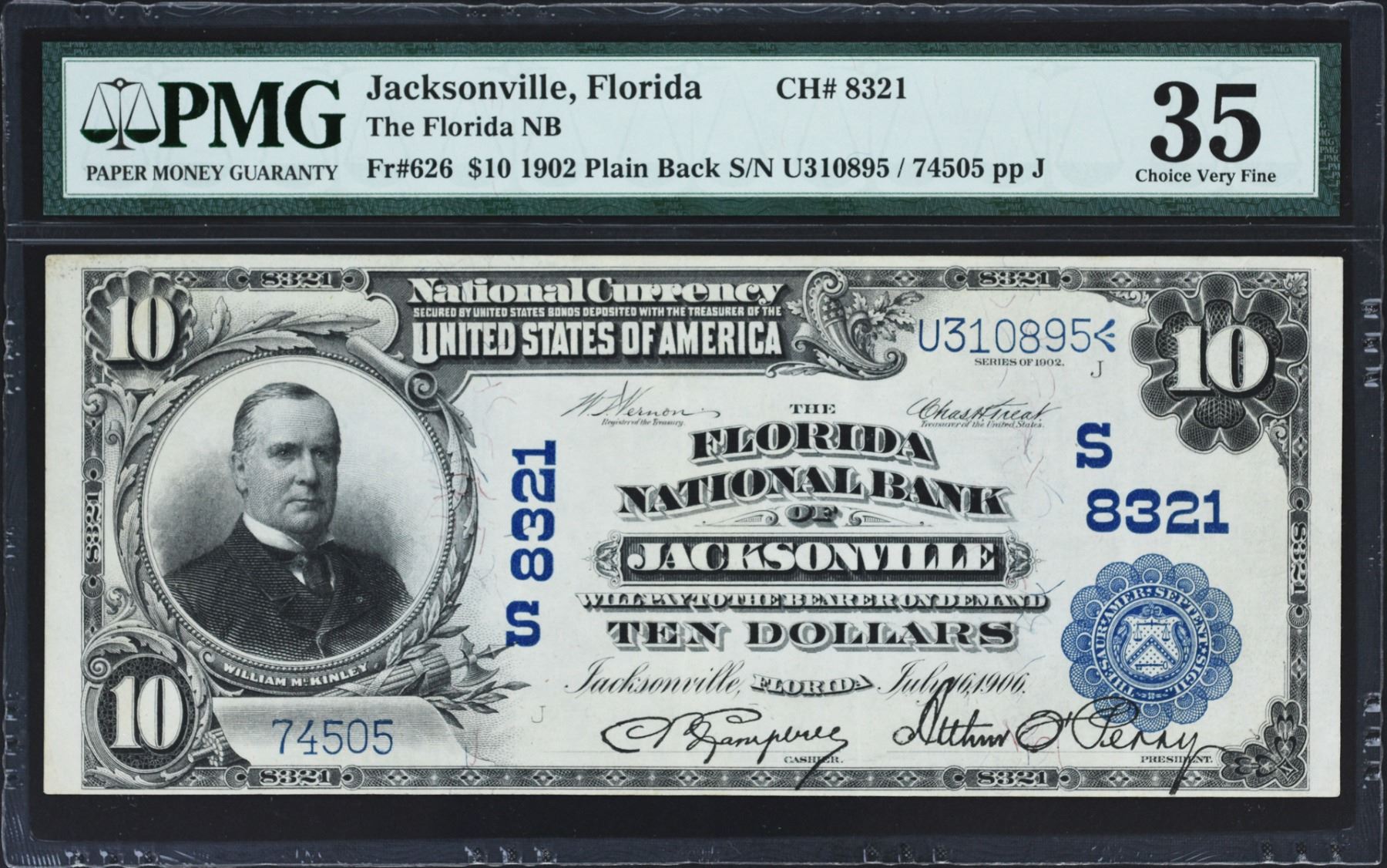 A great trio of Florida notes with the following; $5 on charter 6888 in Very Fine 25; $10 on charter 8321 in Choice Very Fine 35; $20 on charter 5603 in Very Fine 20 with PMG commenting "Minor Repairs."