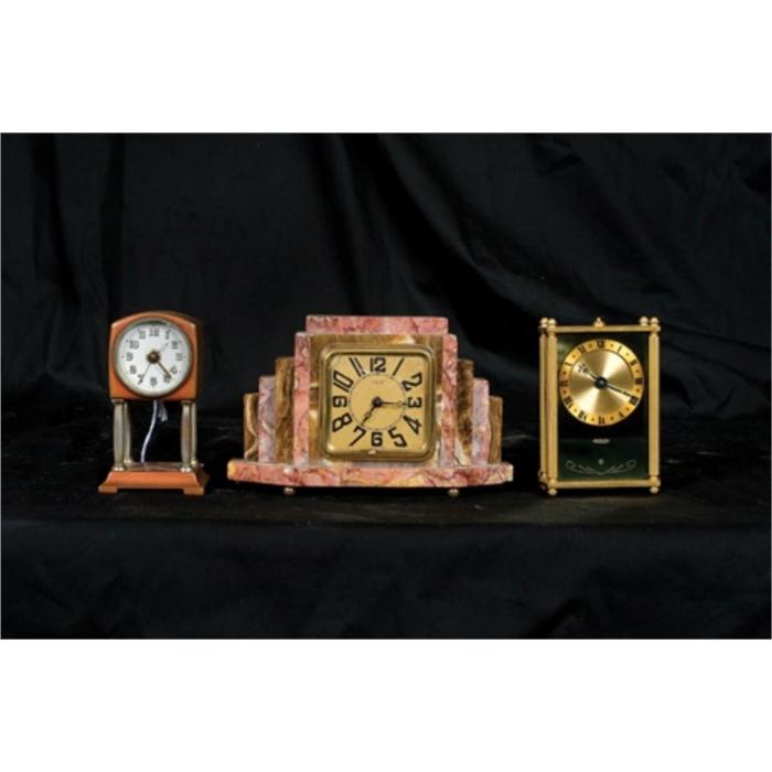 "Collective of French Miniature Shelf Clocks. Marble, Enamel, Carriage. 500-1000"