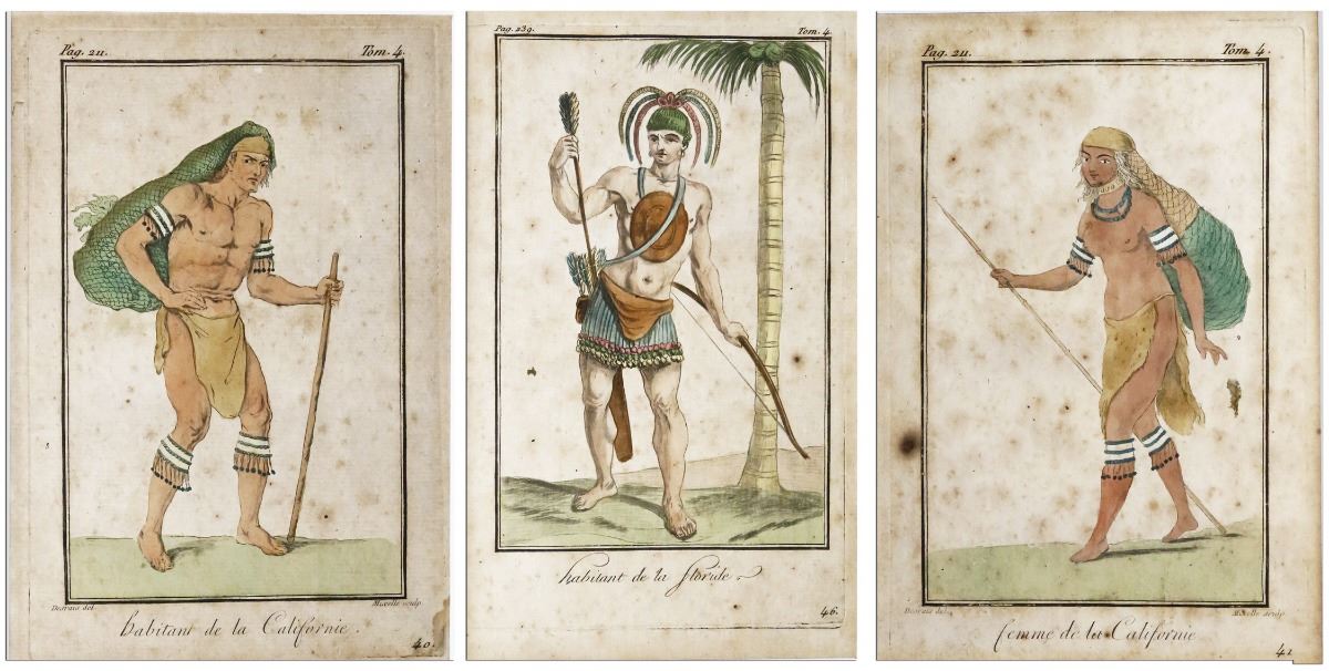 Lot of 3 French prints of Florida and California natives by Claude Louis Desrais and engraved by Jea