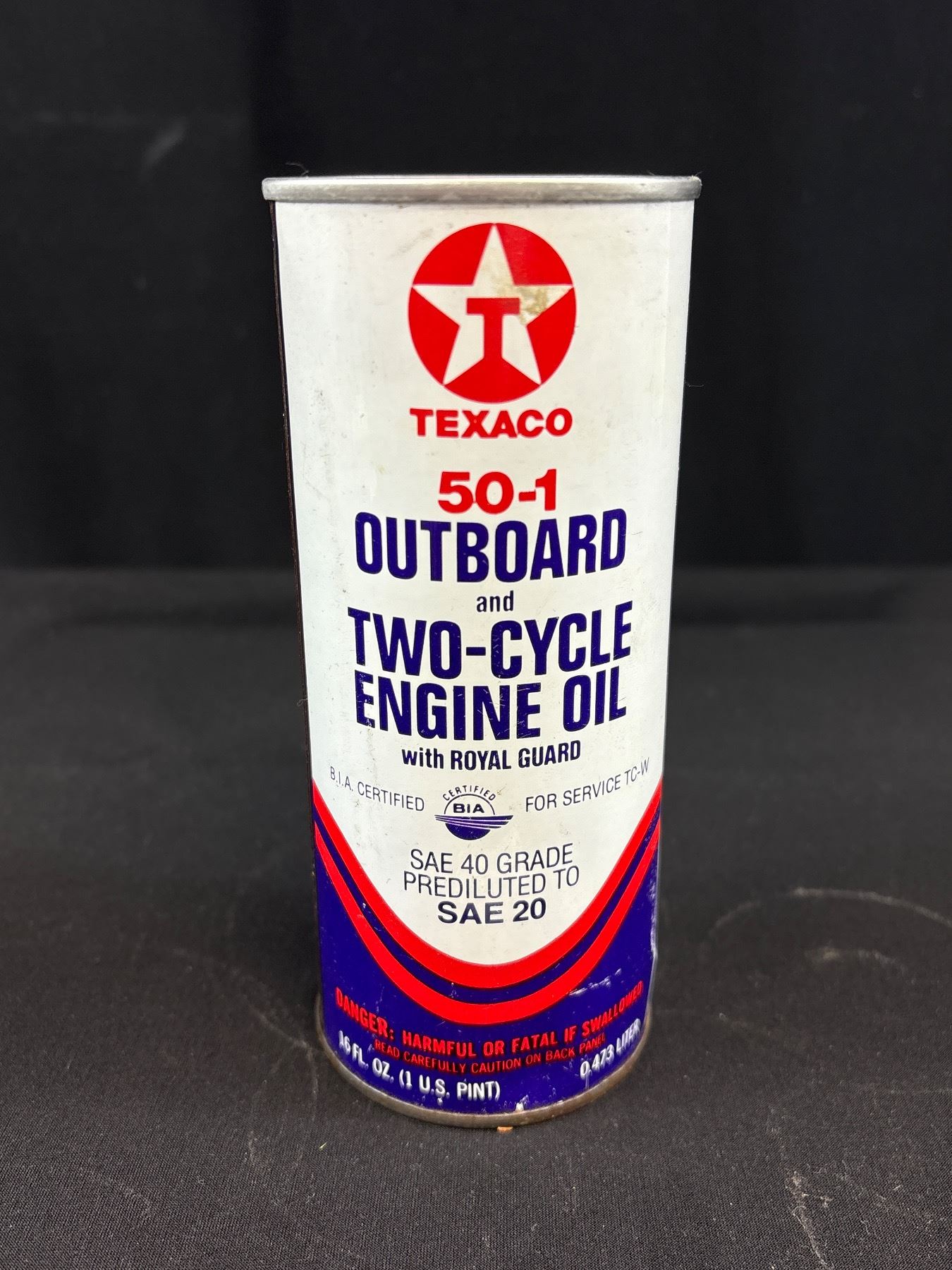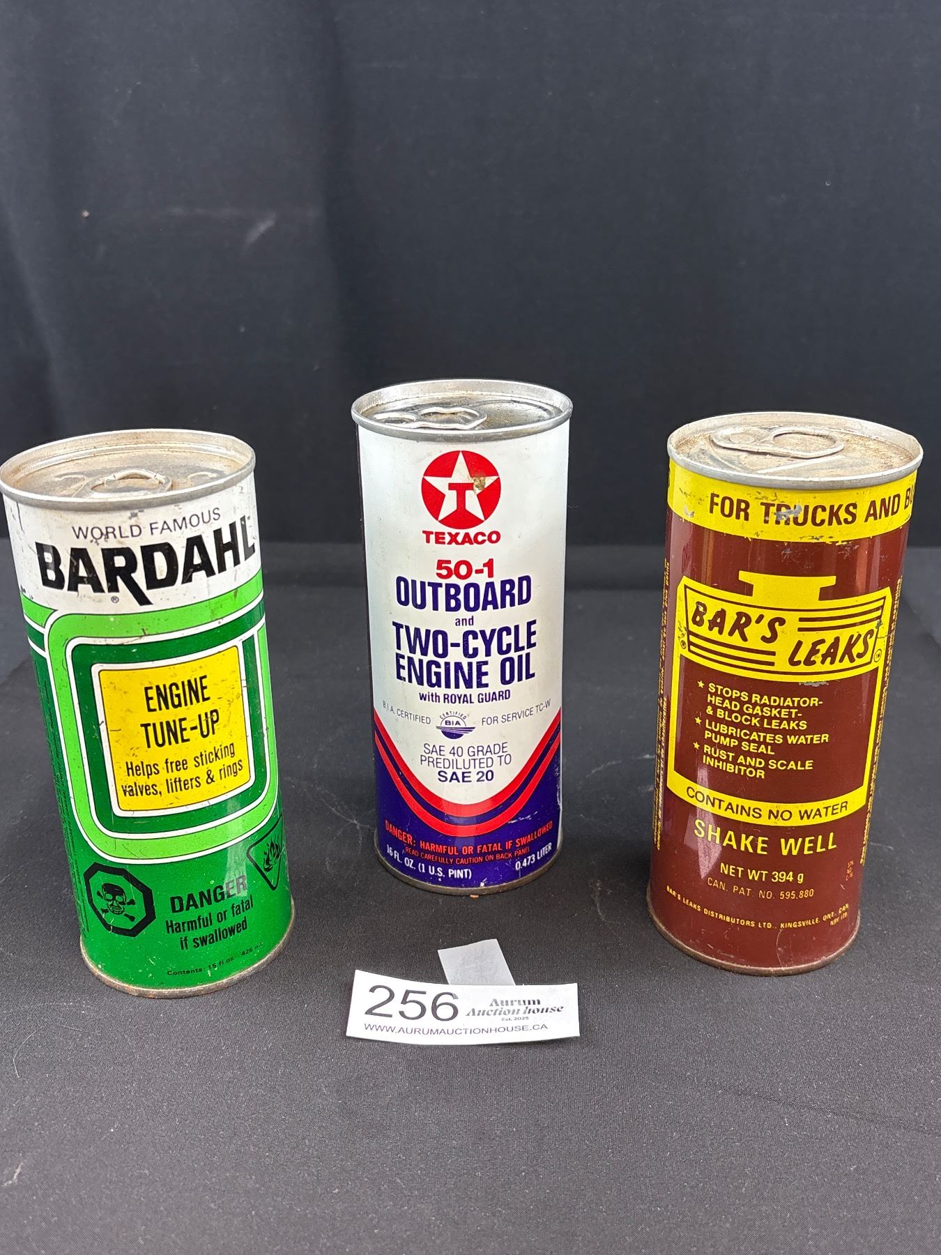 Lot of 3 Full Automotive Tins, Texaco, Outboard, Bardahl Engine Tune Up and Bars Leaks