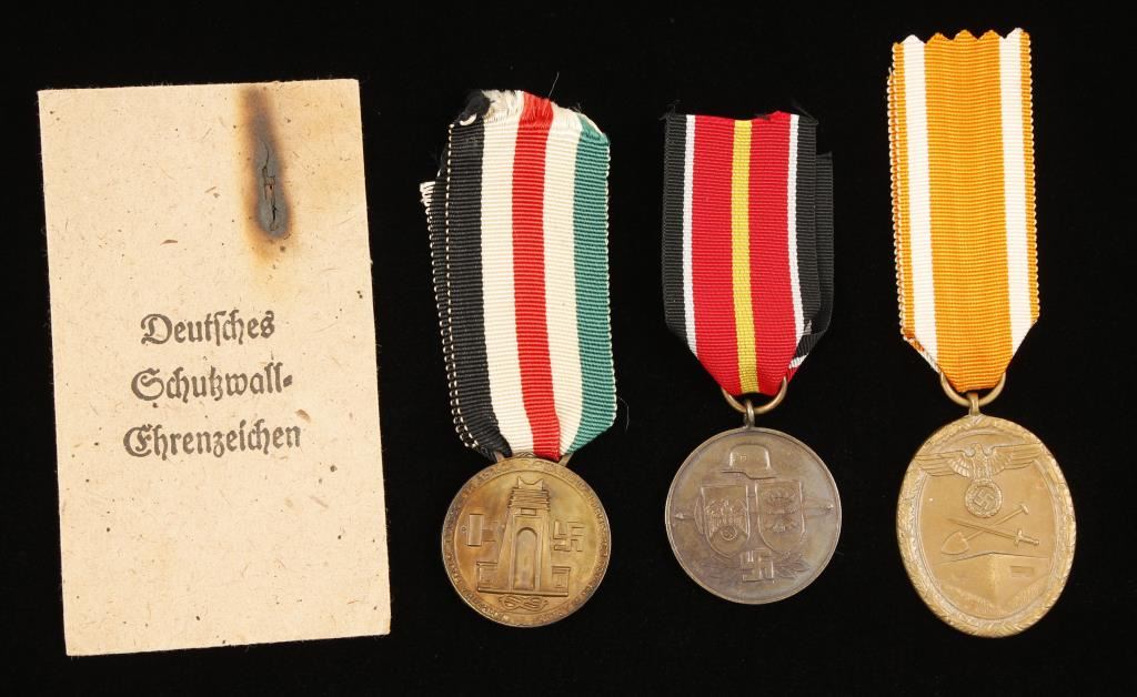 (1) West Wall Decoration includes the award paper envelope & issue ribbon. (1) Spanish Blue Division Eastern Front Decoration includes issue ribbon. (1) Army Afrika Korps Decoration includes the issue ribbon maker marked 'RZM 36/40 SS', aluminum construction. Offered "as is", we don't guarantee the authenticity of this item, please do your research. All sales are final.
