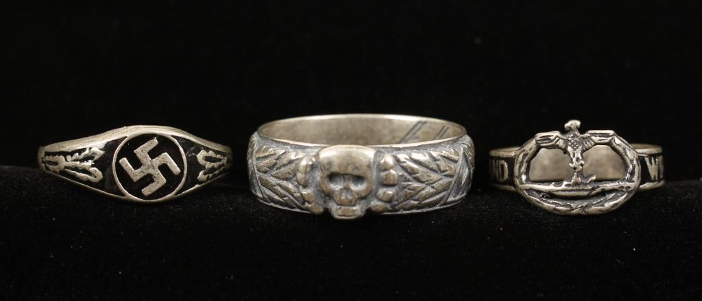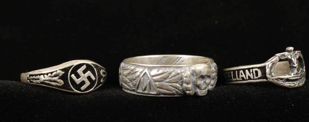 Kriegsmarine U-boat, NSDAP Swastika, and SS honor ring (this one has the Himmler's signature engraved inside of it). Offered "as is" we don't guarantee the authenticity of this item, please do your research. All sales are final.