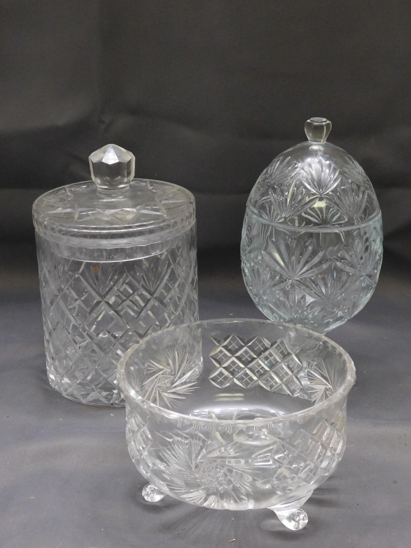 Lot of 3 Glass Crystal Trinket Jars Candy Jars