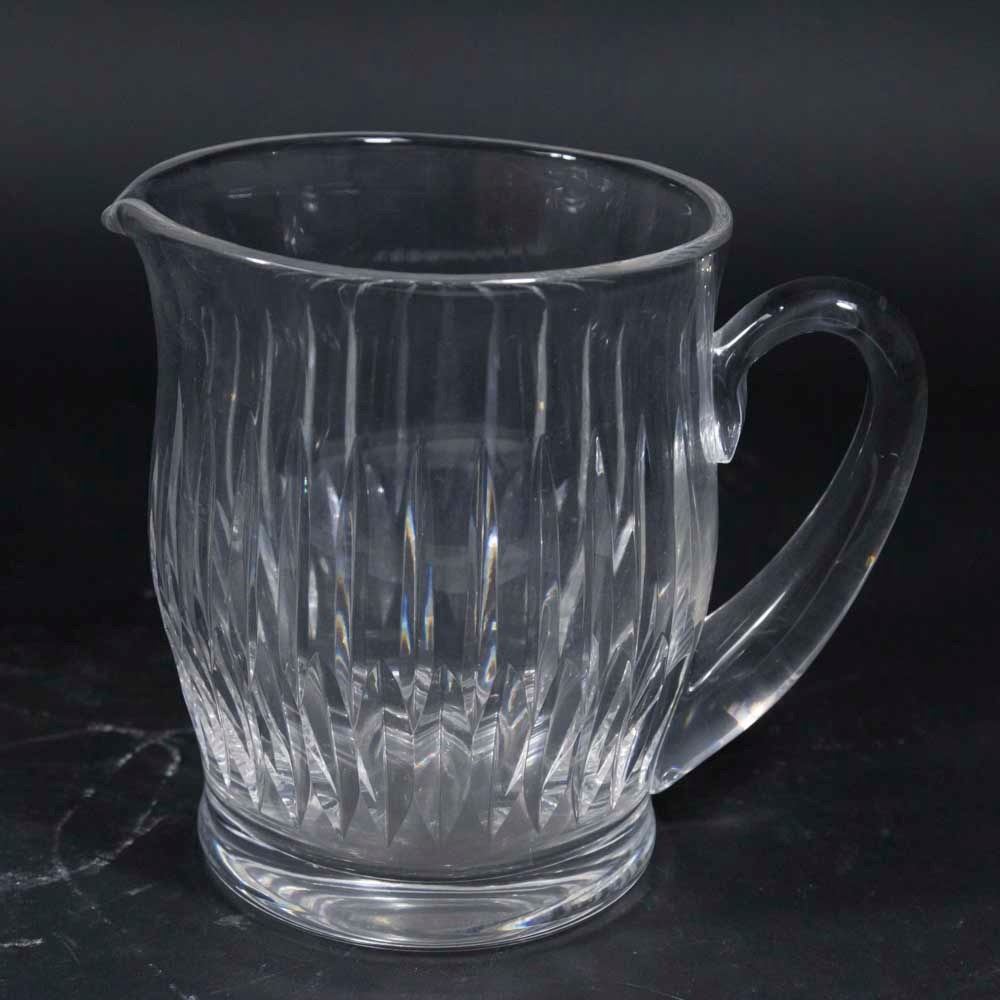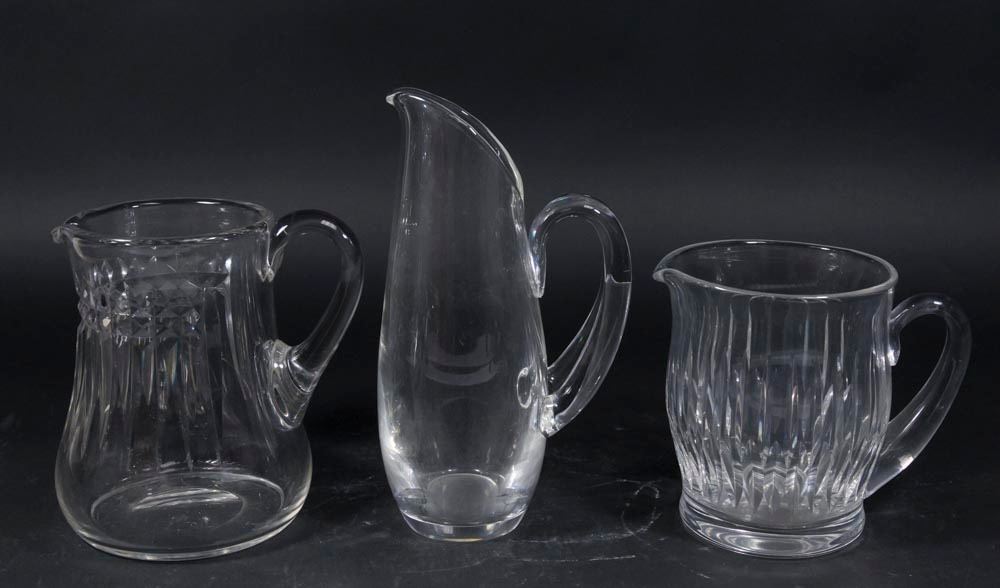 Steuben with double handle, approx. 9 1/2" H; and 2 Waterford. (6011) All in very good condition.
