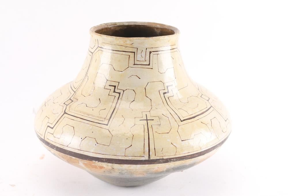 (1) Large pot measuring 8"x9", native geometric design with crosses.
