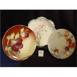 1- 7 1/2" & 2-8 1/2" Lot of 3 Hand painted plates 2 with fruits and 1 floral. All marked France. Good condition.