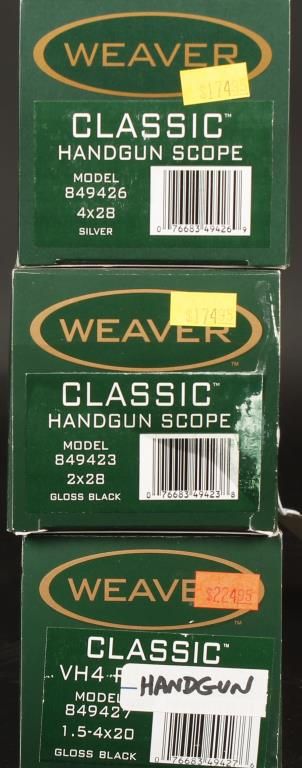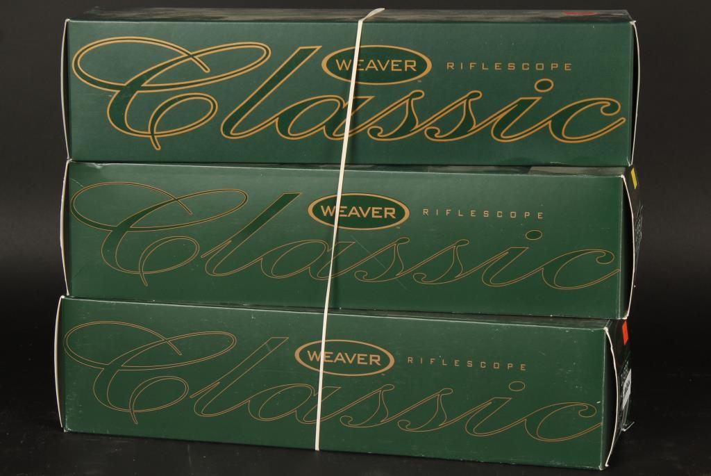 Weaver Model 849423 2X28 Gloss Black, 4X25 Silver, 1.5-4X20 Gloss Black.